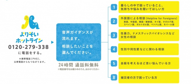 妊娠・出産、子育て、パートナーからの暴力など、どんな人のどんな悩みにも寄り添います。相談は無料です。*対応言語:英語、中国語、韓国・朝鮮語、タイ語、タガログ語、スペイン語、ポルトガル語、ベトナム語、ネパール語